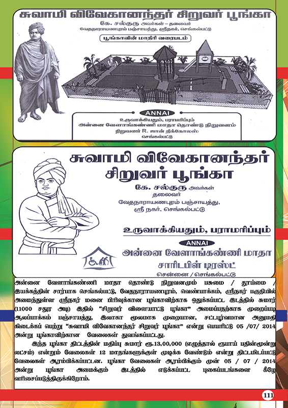 Swami Vivekanandhar Childrens Play Park developed by Annai Velankanni Madha Charitable Trust