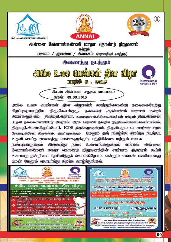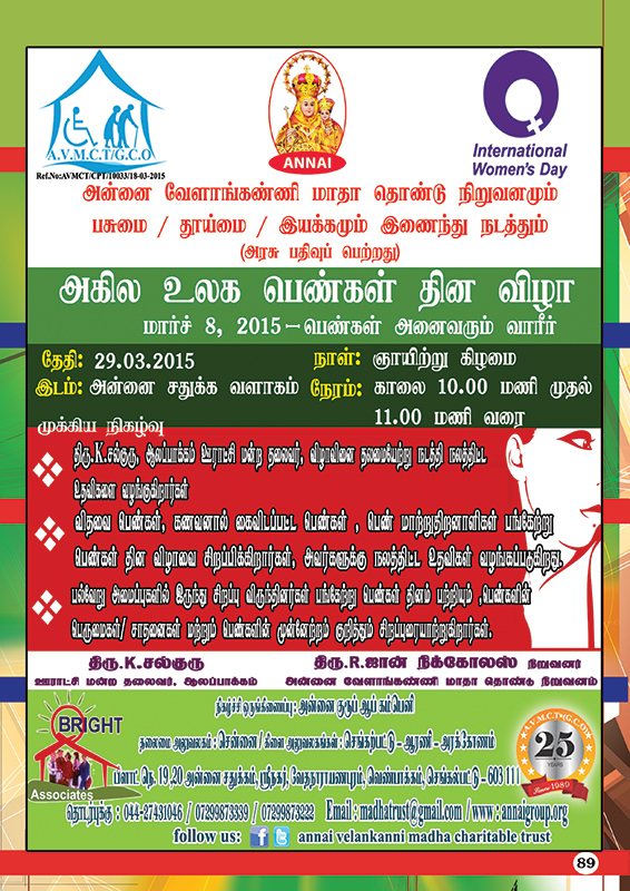 Annai Velankanni Madha Charitable Trust, International Womens Day Celebrations